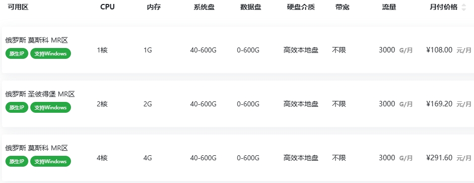俄罗斯的VPS价格相对其他国家来说,性价比还是比较高的。以3000G流量为例,最低配置为108元,算下来每G流量的费用非常划算。更高配置的VPS虽然价格相对较高,但对于需要更强性能的用户来说,投资是值得的。