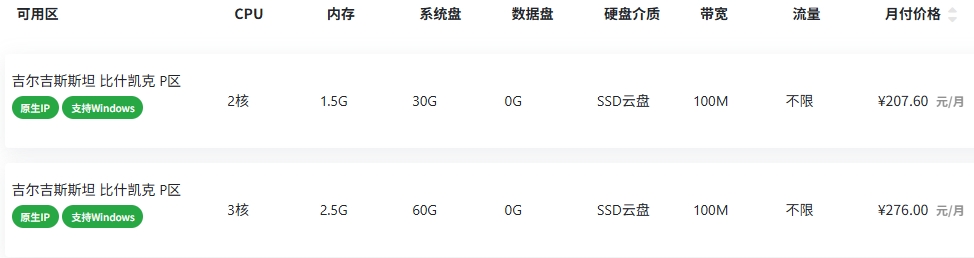 这两款VPS都位于吉尔吉斯斯坦的比什凯克P区,最大的优点是都带有原生IP,而且明确支持Windows系统,方便需要Windows环境的用户使用。