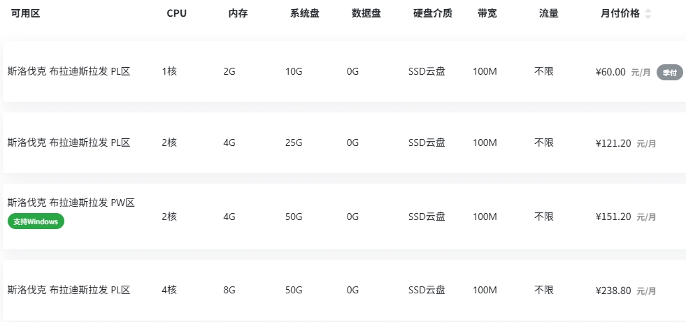 值得一提的是,PW区的2核4GB版本支持Windows系统,适合对操作系统有特殊要求的用户。